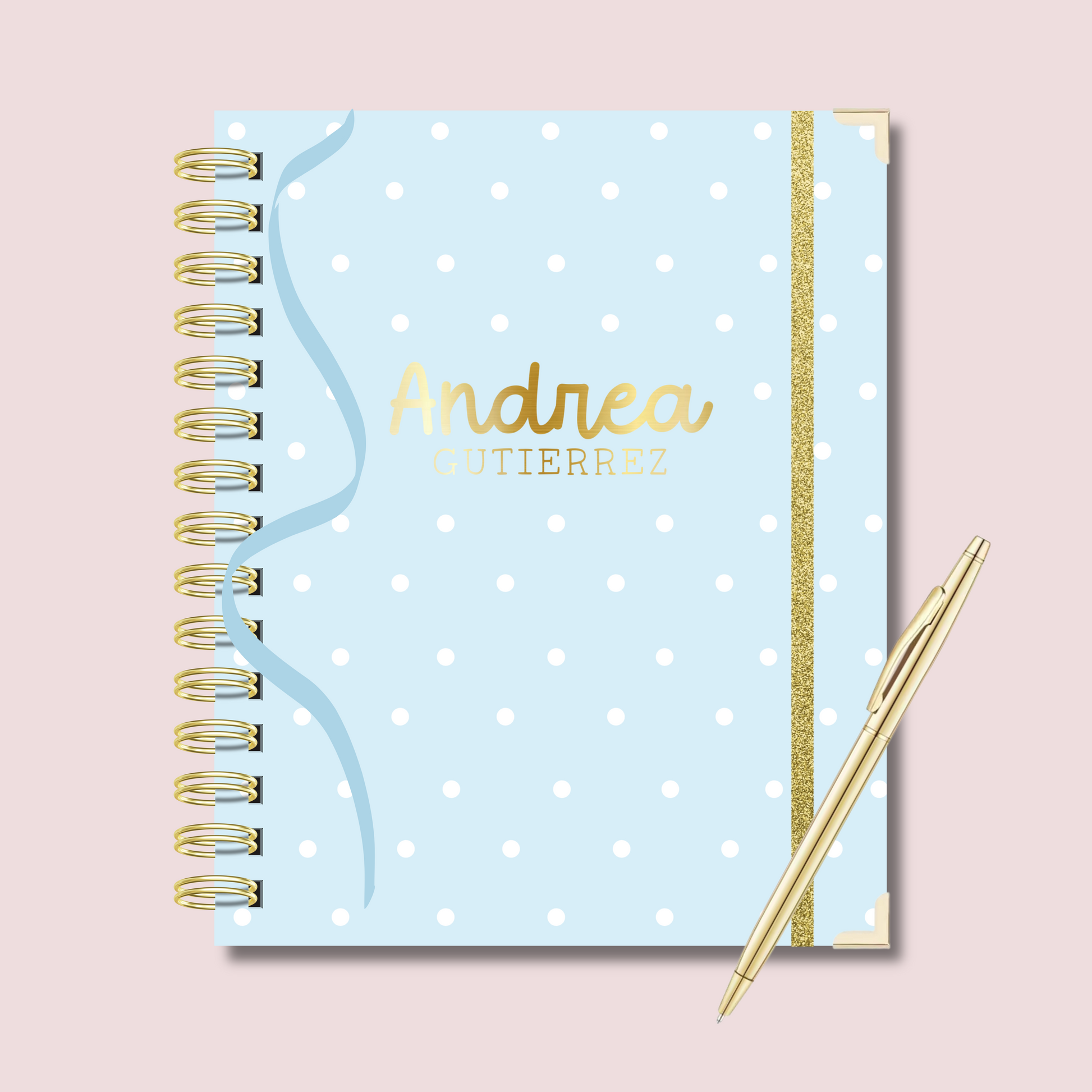 - Tapas duras con acabado mate y detalles dorado metálico